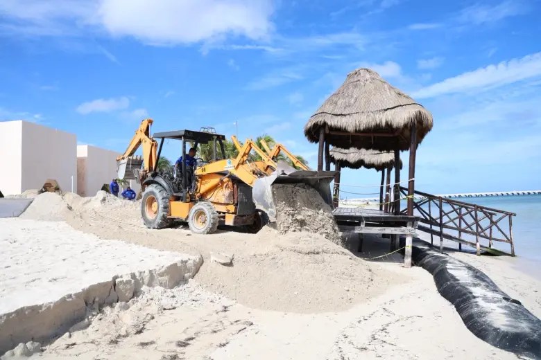 Los trabajos comenzaron este martes con la llegada de 720 metros cúbicos de arena, provenientes del puerto de Sisal, donde actualmente se realizan labores de dragado.